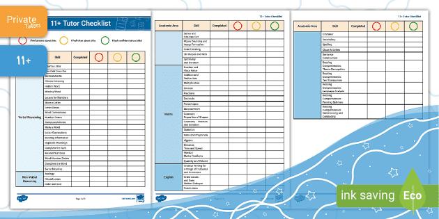 11 Plus Tutor Checklist Rag Rating Template Teacher Made
