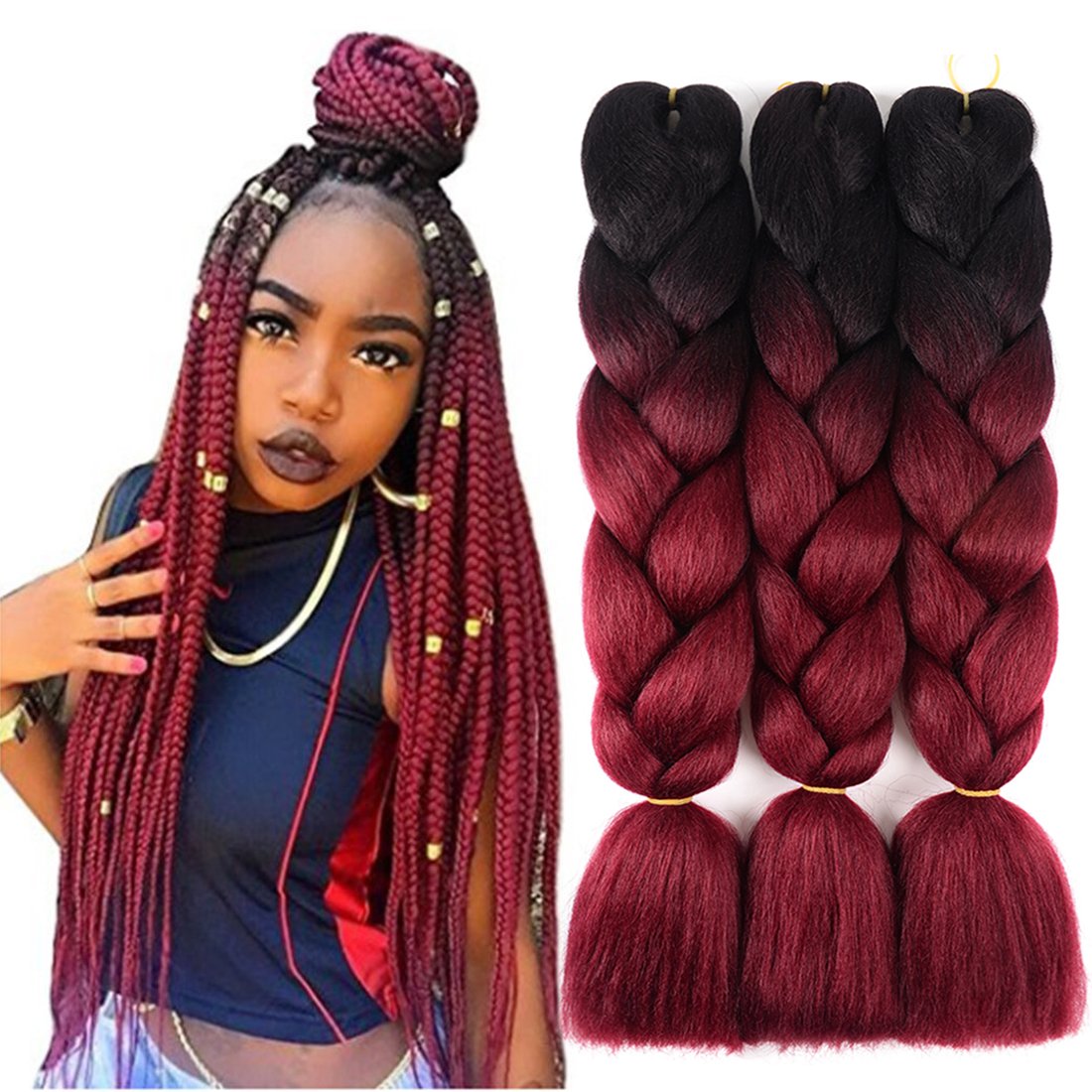 Black Burgundy 3pcs Lot Jumbo Braiding Hair Extensions 60cm African Jumbo Braids Hair Kanekalon Synthetic For Twist Hair Black Burgundy Amazon Ae Beauty
